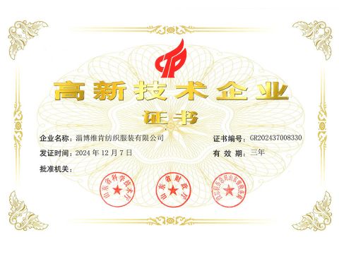 淄博維肯紡織服裝有限公司創建于1998年, 是一家專業生產休閑服裝系列產品為主的中外合資企業,公司擁有自主進出口權,并于2024年被認定為山東省“高新技術企業”。自公司創立伊始,公司便按照國際一流水準,保持高起點、高標準、高質量的經營理念建設企業、培養員工、生產產品。