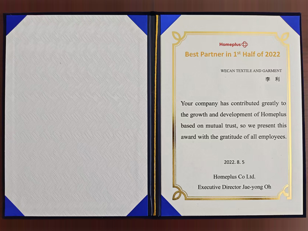 多年以來,與韓國、日本、美國和歐洲的知名企業和品牌合作,并贏得客戶的認可。獲韓國E-LAND集團“優秀合作企業”獎、韓國SHINSEGAE集團“優秀合作公司”獎、 韓國HOMPLUS公司“最佳合作公司”獎。